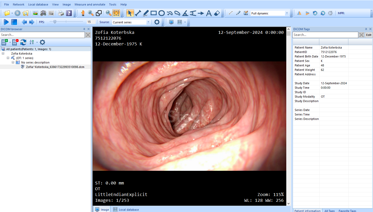 Po zakończeniu nagrywania, użytkownik może odtworzyć film, wybrać poszczególne klatki, określone przedziały czasowe, lub cały materiał wideo i przekształcić go na plik DICOM. Pliki mogą być zapisane lokalnie lub wysłane bezpośrednio na dedykowany serwer PACS dzięki wbudowanej komunikacji DIMSE.